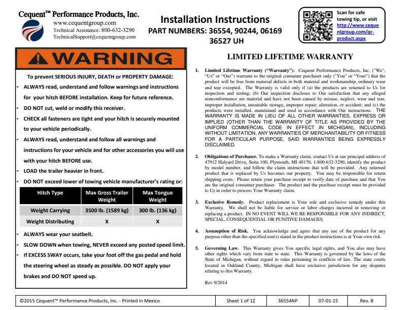 Draw-Tite's Class II trailer hitch is a receiver-style hitch rated up to 3,500 lbs. Gross Trailer Weight (GTW) Weight Carrying (WC). Perfect for light-duty towing and hitch rack needs, the Draw-Tite "Tested Tough' guarantee ensures that this hitch exceeds industry strength standards. Draw-Tite begins with Computer Aided Design (CAD) matched to manufacturer & model year for a perfect fit and top towing performance. Draw-Tite combines this with solid, all-welded construction for maximum performance and safety under the toughest conditions. The E-Coat base with black powder coat finish keeps your hitch looking good and resists corrosion for many years of service.Bolt-on installation with no welding required, and complete hardware kit and installation instructions are included. Backed by Draw-Tite's nationwide limited lifetime warranty. 1-1/4" Square Receiver Tube Opening Removable Drawbar, Pin and Clip Sold SeparatelyNeat Appearance, All Frame Attachments E-Coat Base w/ Black Powder Coat Finish Rated up to 3,500 lbs. (GTW) Weight Carrying (WC) Solid All-Welded Construction for Maximum Strength and Safety Custom Built According to Manufacturer & Model Year Ensures Perfect Fit and Top Towing Performance Computer-Aided Design and Fatigue Stress Testing Designed to Withstand Road Abuse Within Specified Capacities Backed by a Nationwide Limited Lifetime Warranty