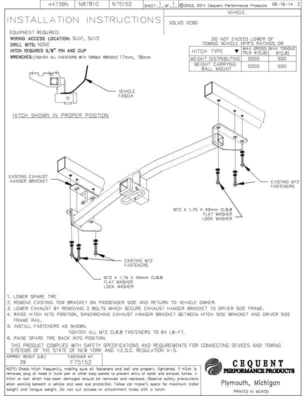 Draw-Tite custom-fit hitches are built according to manufacturer vehicle weight specifications and model year to ensure a perfect fit and top towing performance. Featuring solid all-welded construction for maximum strength and safety, every hitch meets and exceeds industry standards. 2" Square Receiver Tube Opening Max-Frame receivers are designed for trucks, vans and sport utility vehicles Neat Appearance, All Frame Attachments E-Coat Base w/ Black Powder Coat Finish Rated up to 5,000 lbs. (GTW) Weight Carrying (WC)Rated up to 5,000 lbs. (GTW) Weight Distributing (WD) Solid All-Welded Construction for Maximum Strength and Safety Custom Built According to Manufacturer & Model Year Ensures Perfect Fit and Top Towing Performance Computer-Aided Design and Fatigue Stress Testing Designed to Withstand Road Abuse Within Specified Capacities Backed by a Nationwide Limited Lifetime Warranty