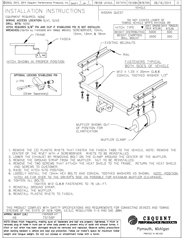 Draw-Tite custom-fit hitches are built according to manufacturer vehicle weight specifications and model year to ensure a perfect fit and top towing performance. Featuring solid all-welded construction for maximum strength and safety, every hitch meets and exceeds industry standards. 2" Square Receiver Tube Opening Max-Frame receivers are designed for trucks, vans and sport utility vehicles Neat Appearance, All Frame Attachments E-Coat Base w/ Black Powder Coat Finish Rated up to 3,500 lbs. (GTW) Weight Carrying (WC)Rated up to 5,000 lbs. (GTW) Weight Distributing (WD) Solid All-Welded Construction for Maximum Strength and Safety Custom Built According to Manufacturer & Model Year Ensures Perfect Fit and Top Towing Performance Computer-Aided Design and Fatigue Stress Testing Designed to Withstand Road Abuse Within Specified Capacities Backed by a Nationwide Limited Lifetime Warranty