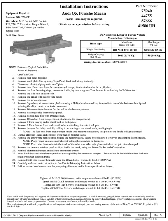 Draw-Tite custom-fit hitches are built according to manufacturer vehicle weight specifications and model year to ensure a perfect fit and top towing performance. Featuring solid all-welded construction for maximum strength and safety, every hitch meets and exceeds industry standards. 2" Square Receiver Tube Opening Max-Frame receivers are designed for trucks, vans and sport utility vehicles Neat Appearance, All Frame Attachments E-Coat Base w/ Black Powder Coat Finish Rated up to 5,000 lbs. (GTW) Weight Carrying (WC)Solid All-Welded Construction for Maximum Strength and Safety Custom Built According to Manufacturer & Model Year Ensures Perfect Fit and Top Towing Performance Computer-Aided Design and Fatigue Stress Testing Designed to Withstand Road Abuse Within Specified Capacities Backed by a Nationwide Limited Lifetime Warranty