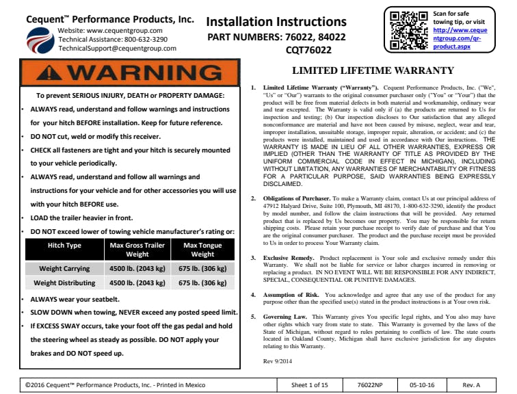 Draw-Tite custom-fit hitches are built according to manufacturer vehicle weight specifications and model year to ensure a perfect fit and top towing performance. Featuring solid all-welded construction for maximum strength and safety, every hitch meets and exceeds industry standards. 2" Square Receiver Tube Opening Max-Frame receivers are designed for trucks, vans and sport utility vehicles Neat Appearance, All Frame Attachments E-Coat Base w/ Black Powder Coat Finish Rated up to 4,500 lbs. (GTW) Weight Carrying (WC)Rated up to 4,500 lbs. (GTW) Weight Distributing (WD) Solid All-Welded Construction for Maximum Strength and Safety Custom Built According to Manufacturer & Model Year Ensures Perfect Fit and Top Towing Performance Computer-Aided Design and Fatigue Stress Testing Designed to Withstand Road Abuse Within Specified Capacities Backed by a Nationwide Limited Lifetime Warranty