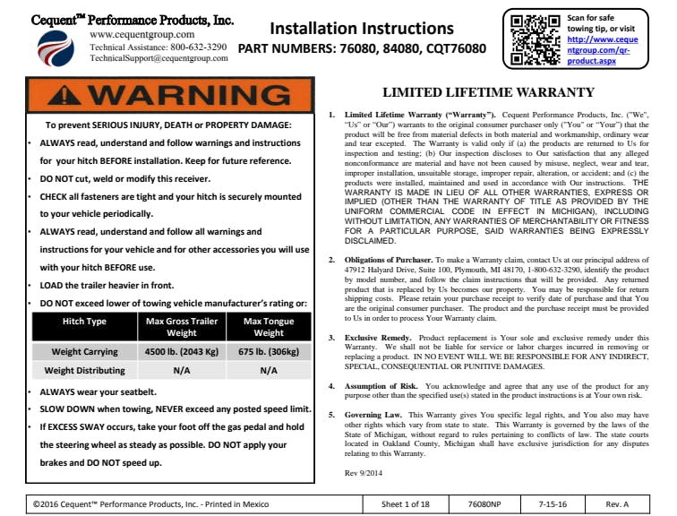 Draw-Tite custom-fit hitches are built according to manufacturer vehicle weight specifications and model year to ensure a perfect fit and top towing performance. Featuring solid all-welded construction for maximum strength and safety, every hitch meets and exceeds industry standards. 2" Square Receiver Tube Opening Max-Frame receivers are designed for trucks, vans and sport utility vehicles Neat Appearance, All Frame Attachments E-Coat Base w/ Black Powder Coat Finish Rated up to 4,500 lbs. (GTW) Weight Carrying (WC)Solid All-Welded Construction for Maximum Strength and Safety Custom Built According to Manufacturer & Model Year Ensures Perfect Fit and Top Towing Performance Computer-Aided Design and Fatigue Stress Testing Designed to Withstand Road Abuse Within Specified Capacities Backed by a Nationwide Limited Lifetime Warranty